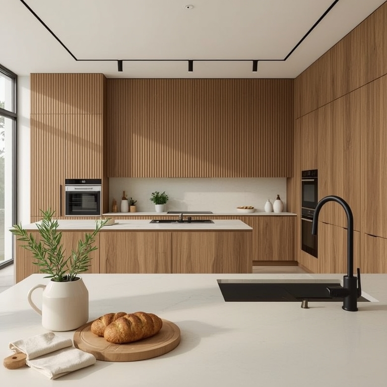 - dobierz materiały: fornir, mat, blat z kompozytu lub kwarcu; sprawdź trwałość i koszt,